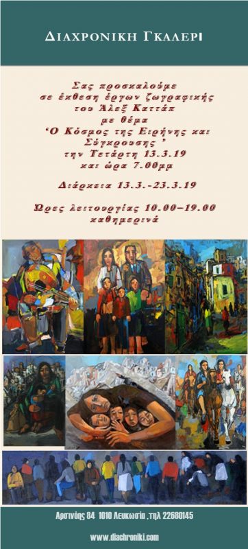 Σας προσκαλούμε σε έκθεση έργων ζωγραφικής του Άλεξ Καττάπ με θέμα “Ο Κόσμος της Ειρήνης και Σύγκρουσης”.